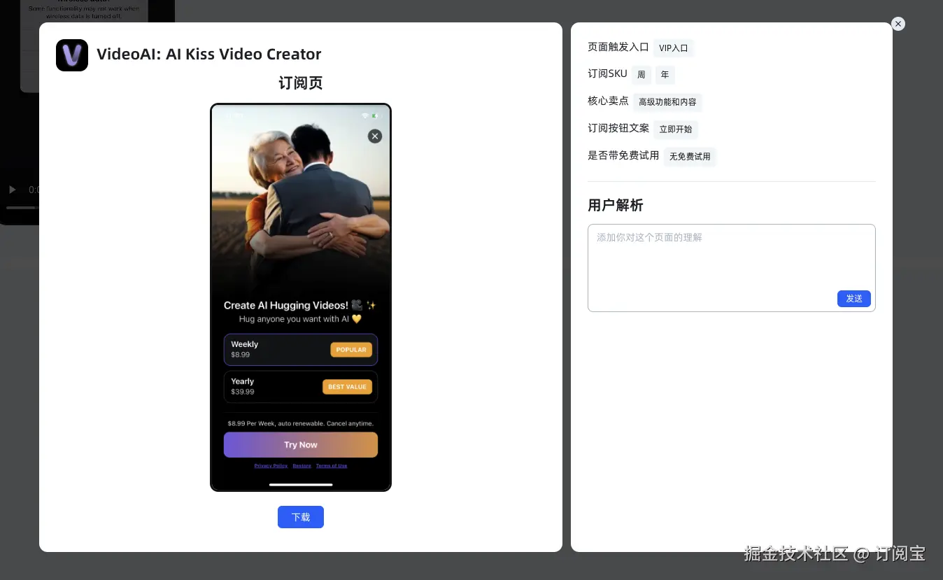 订阅宝是为APP开发者和出海应用相关专业人士提供的强大的订阅收入提升工具,核心是通过访问和分析竞品的订阅页面、订阅模式以及历史收入数据,来帮助用户优化自己的订阅模型,并提升转化率和收入,增强APP的市场竞争力。