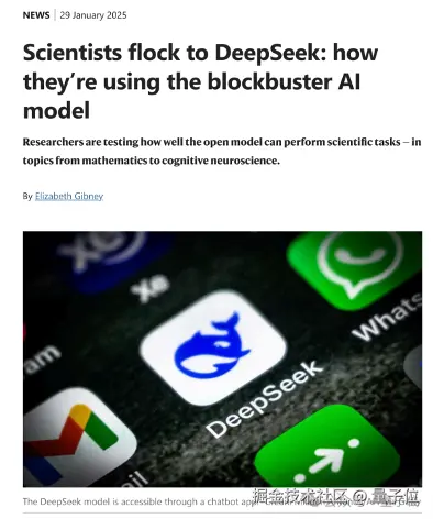 Nature 更是几度发文,因为 DeepSeek 开源低成本易部署等优势,科学家们纷纷涌向 DeepSeek,这种模型已经是科研 AI 工具中的全能者。