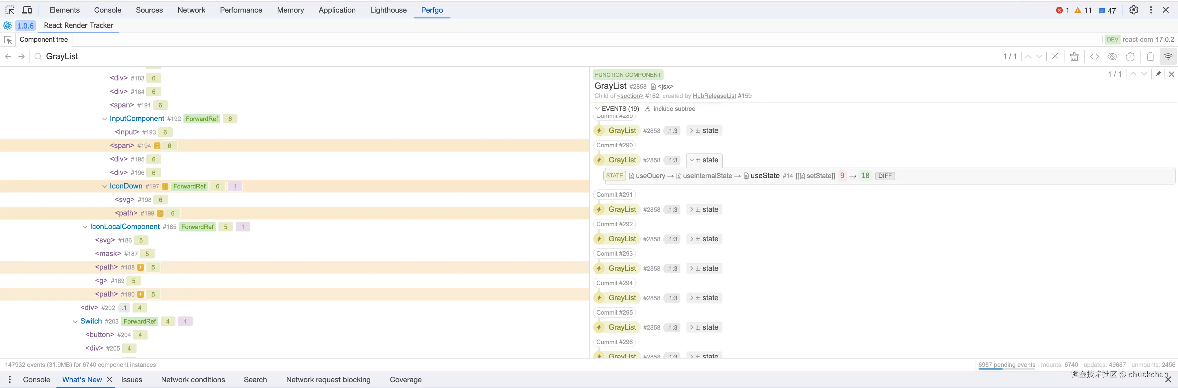疑问2: 即使因为轮询三个接口,数据发生了变化,也不应该发生这么多次耗时长的rerender