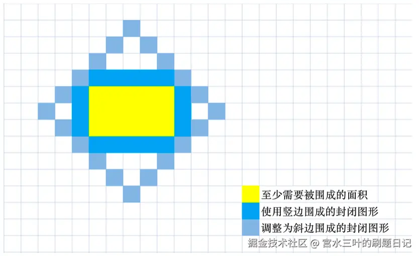如果不是该形状,则可以通过调整障碍物的直边为一条完整的斜边,来组成封闭三角形,围成面积不会变小: