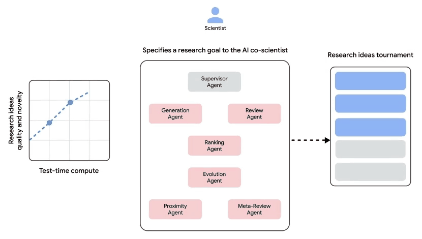 为科学家群体推出 “科研搭子”AI co-scientist,一个能够利用高级推理综合大量文献、生成新颖假设,并提出详细研究计划的多智能体 AI 系统。