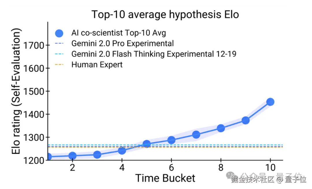 在研究中,AI co-scientist 利用 Elo 评级系统来衡量和提升其在解决科学问题方面的能力。