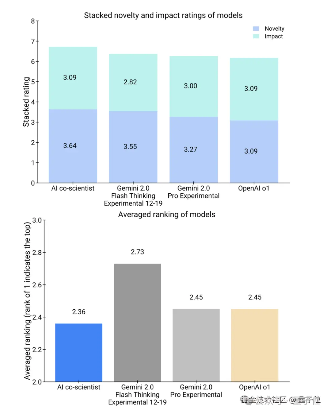更关键的,基于对 11 个研究目标子集的分析,专家评估认为 AI co-scientist 在新颖性和影响力方面的表现优于其他基线模型。