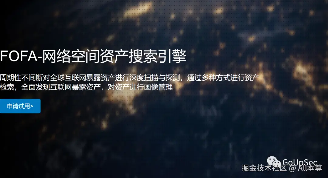 Fofa是白帽汇推出的一款强大的网络空间资产搜索引擎。通过进行网络空间测绘,能够帮助研究人员或者企业迅速进行网络资产匹配。国内类似的优秀搜索引擎还包括奇安信的全球鹰(Hunter)、知道创宇的钟馗之眼(Zoomeye)以及奇虎360的360Quake。