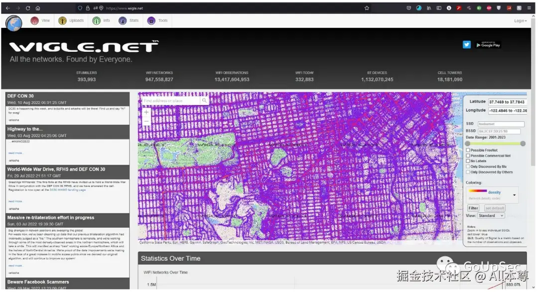 无线网络(WiFi、蓝牙、基站)分析数据库。