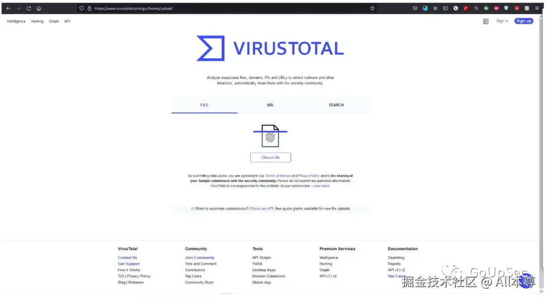 VirusTotal是一个提供免费的可疑文件分析服务的网站。可用于分析可疑文件、域名、IP以及URL中的恶意软件。