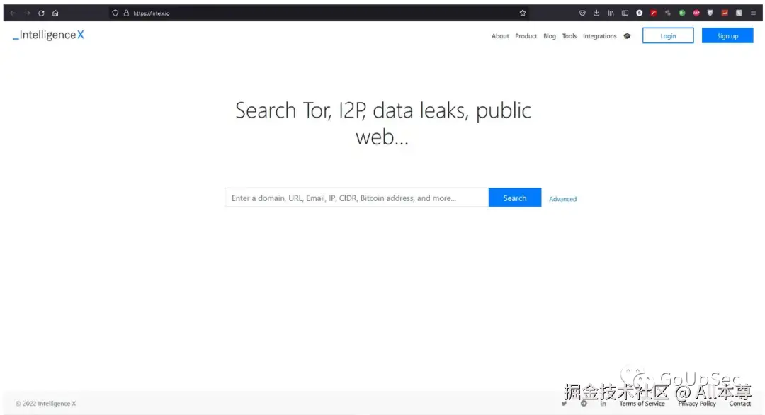 可用于搜索Tor、I2P、泄露数据、域名和邮件地址。