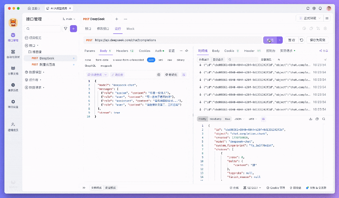 Apifox 增强的 SSE 功能提升开发 AI 应用的能力,更加高效地调试 AI 接口,同时直观地展示模型推理的过程,真的很强大,赶紧下载 Apifox,现在就去试试吧!