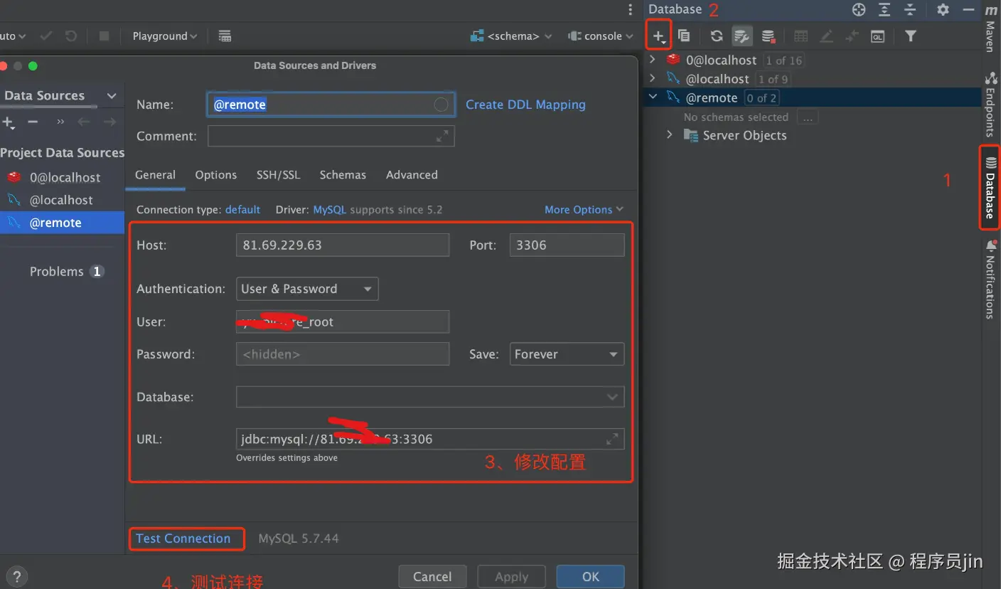 在 IDEA 中打开后端项目,通过数据库面板在本地检查连接是否正常: