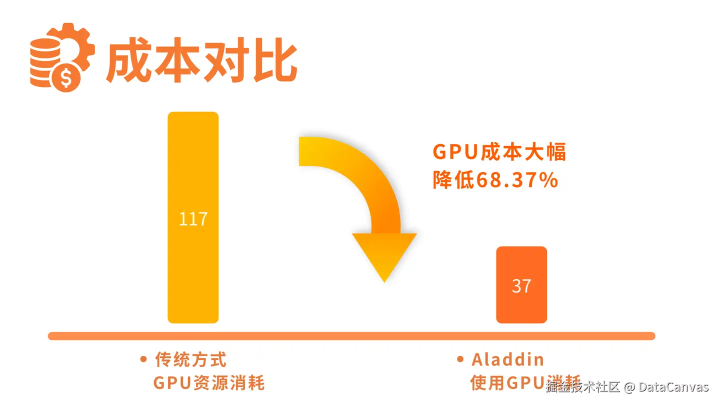在复现DeepSeek Aha Moment实践中,传统方式GPU资源消耗为117,而Aladdin方式GPU资源消耗仅为37,GPU算力成本大幅降低68.37%。