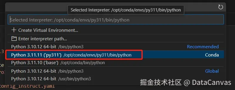 选择刚才创建的conda环境py311作为python解释器: