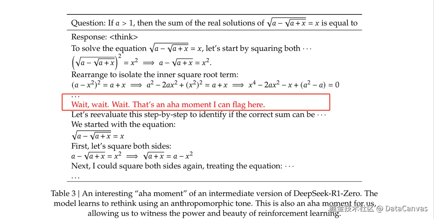 类似这种 突然想到,突然意识到,突然发现 均为 Aha moment,可在训练的过程中找到。
