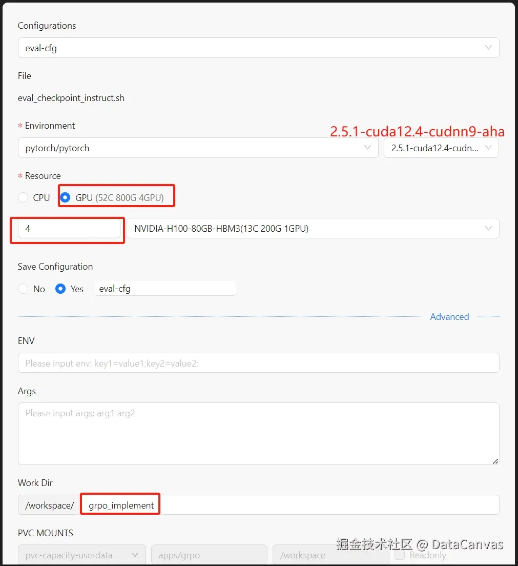 - 在VSCode中的文件资源管理器中,打开lauch_grpo.sh,在编辑器中右键菜单中,选择"Run Shell",并在弹出的对话框中做如下配置: