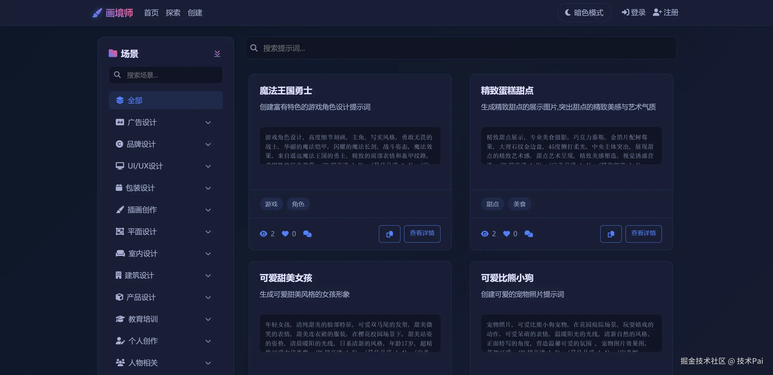 画境师提供丰富多样的场景模板和提示词库,覆盖各类创作需求: