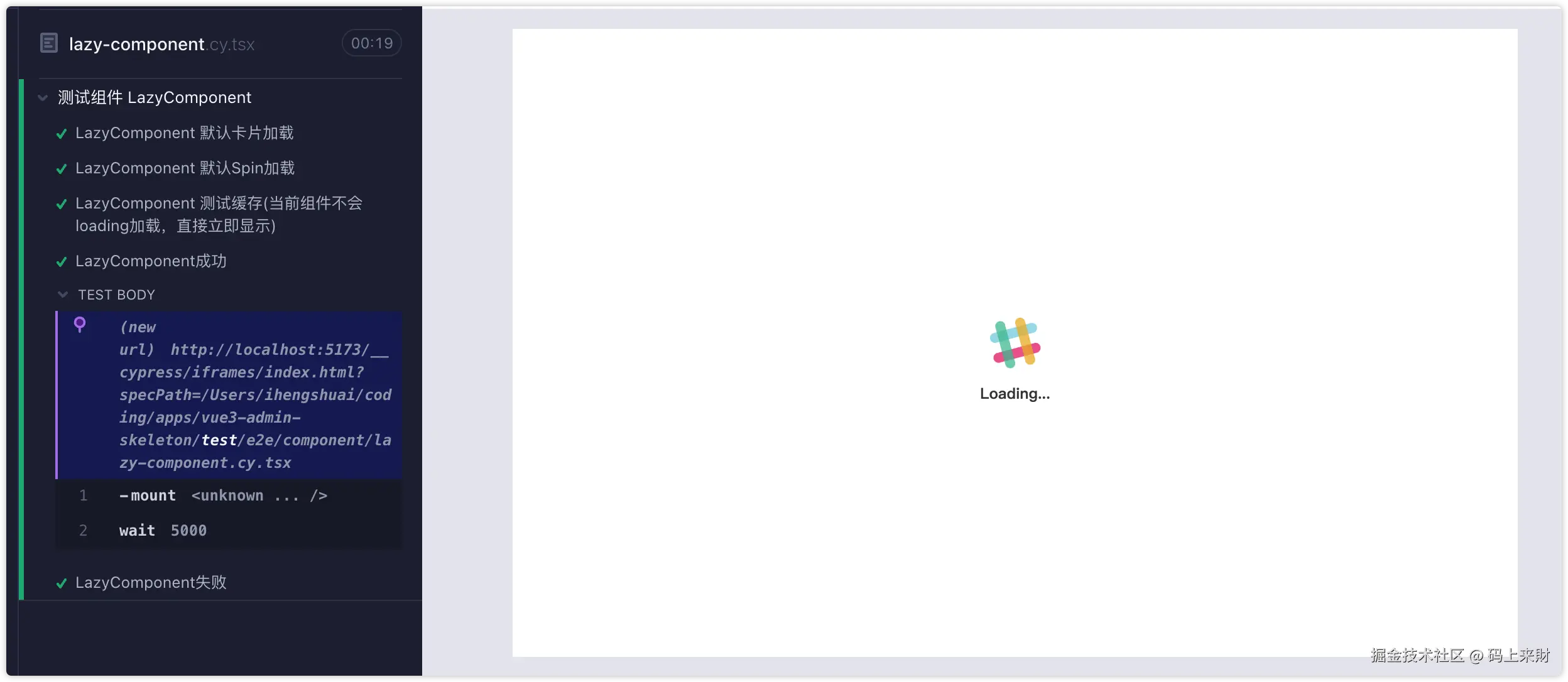 然后我们创建一个组件测试用例文件lazy-component.cy.tsx,然后根据不同的条件去渲染预期的页面效果