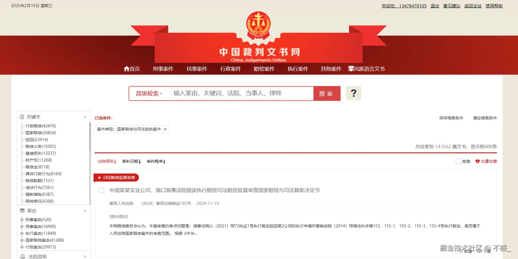 - 任务描述: 请在中国裁判文书网中查询与特定案件相似的案例信息,需包括案件类型、判决年份等关键词。