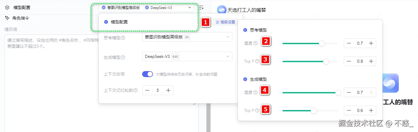 - 模型配置:用于调节模型设置。