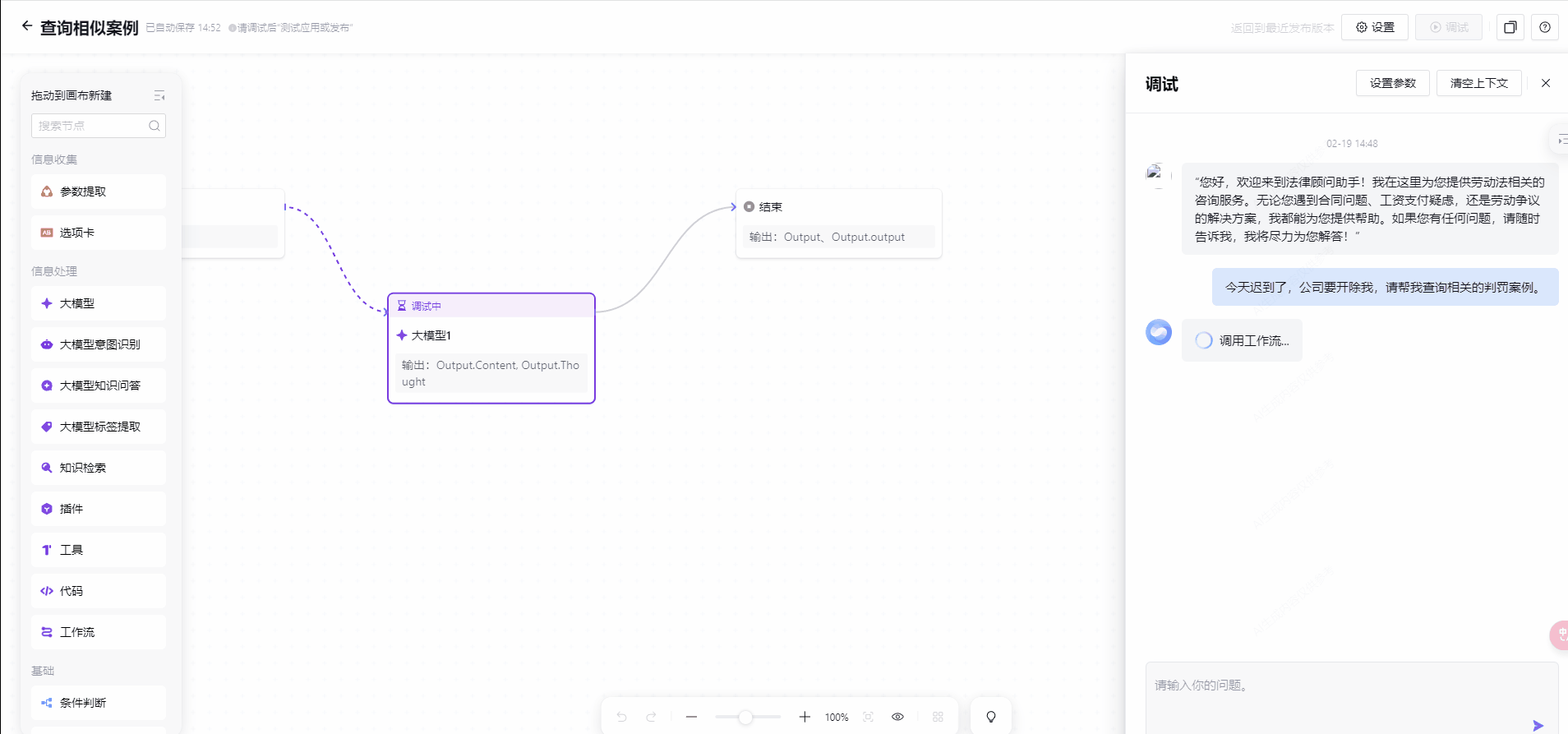 工作流为用户提供了直观的可视化画布,支持通过大模型、代码、参数提取等多种节点来编排复杂的业务流程。旨在实现稳定且可控的业务效果,确保每个流程节点的准确性和可解释性。