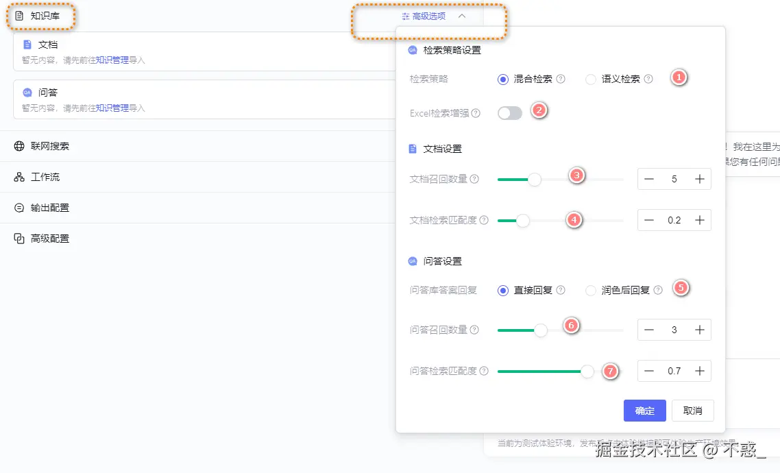 如果业务场景需要围绕知识库提供更为严谨的回复,建议将“联网搜索”关闭、并将回复设置切换为“大模型对知识来源以外的问题,按填写内容回复”。