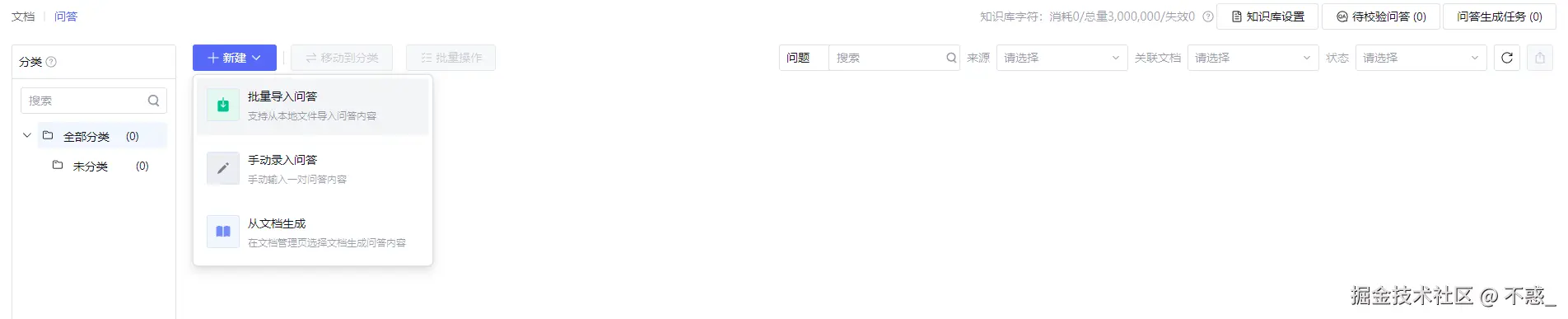 - 批量导入问答:支持从本地文件导入问答内容