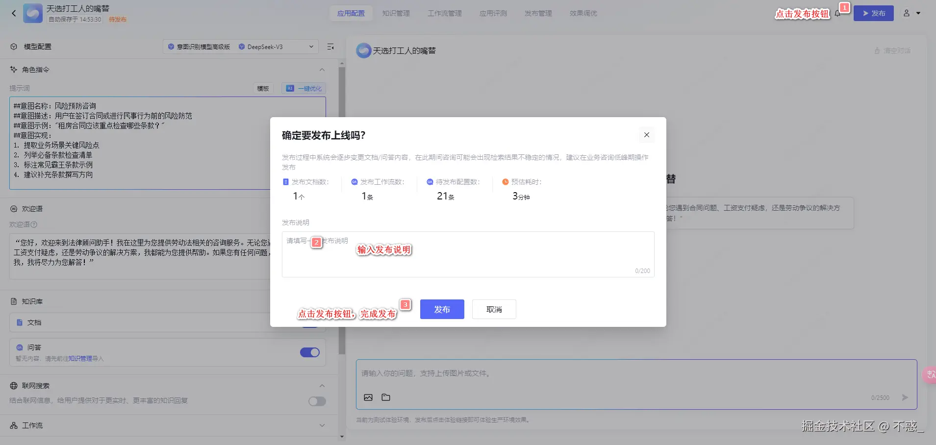 罗翔教授倡导的 "法条通俗化" 理念,正通过 由腾讯云首发的大模型知识引擎(LLM Knowledge Engine),得以实现——该平台面向企业客户及合作伙伴的,基于大模型的应用构建平台,结合企业专属数据,更快更高效地搭建Agent、RAG、工作流等多种模式应用,推动大语言模型在企业中的应用落地。