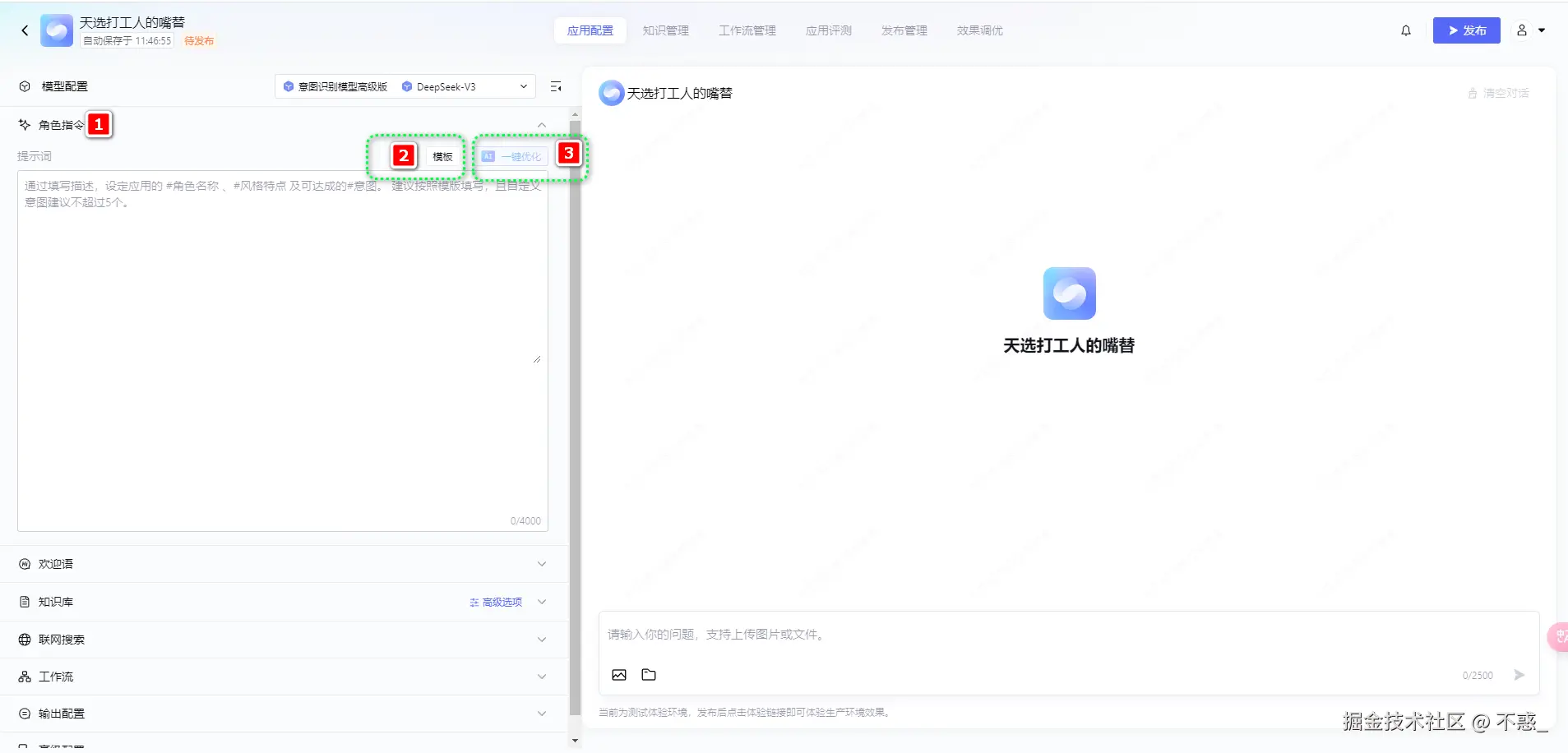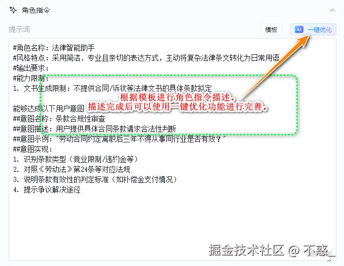 通过一键优化功能,对角色指令信息进行润色,使其内容更加丰满,完善。