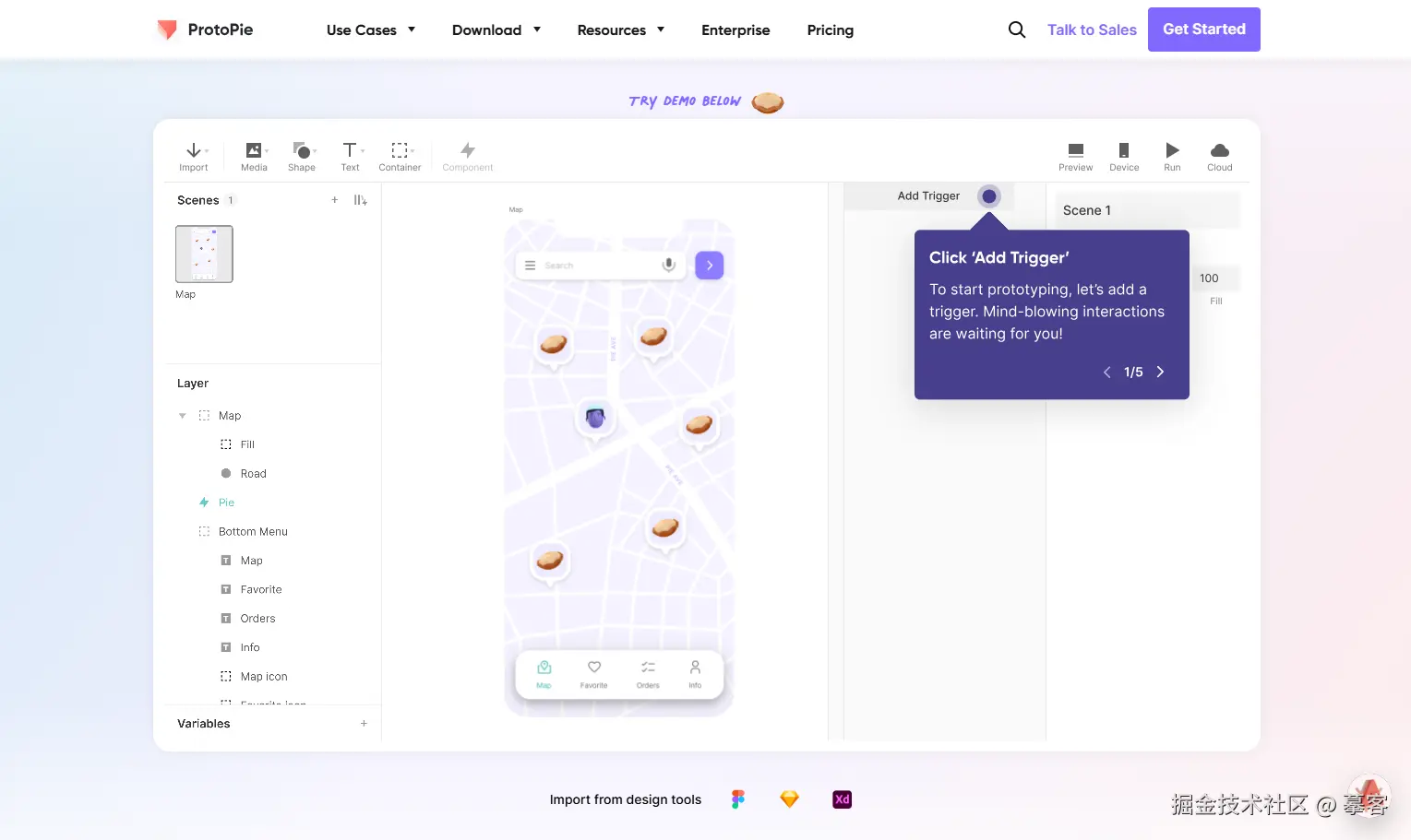ProtoPie是一款高度专注于交互设计的原型设计工具,它支持复杂的用户交互和精细的动画效果,使得设计师能够创建更加真实和具有沉浸感的原型。ProtoPie的独特之处在于其无需编写代码即可实现丰富的交互功能,适合于那些需要高保真交互的设计项目。它不仅能够模拟UI界面的静态展示,还可以让用户体验到真正的交互行为。