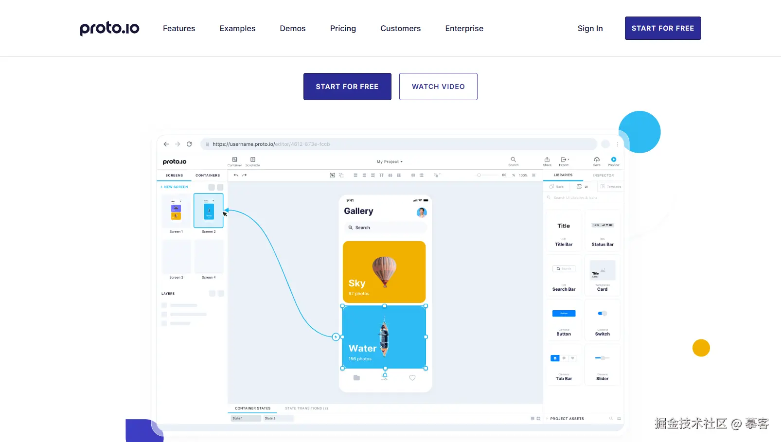 Proto.io是一款功能强大的在线原型设计工具,能够帮助产品经理快速构建高保真的互动原型。Proto.io的最大优势在于其完全基于云的工作流程,用户可以通过浏览器直接创建、编辑和分享原型,无需下载任何软件。
