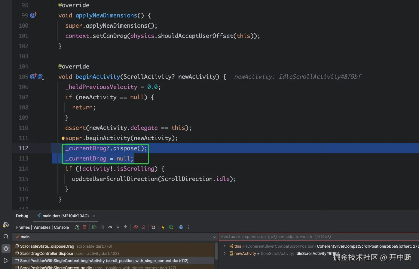 _drag会立即被置为null,并dispose掉既有的ScrollActivity。