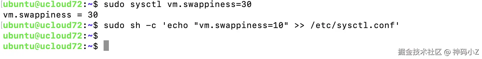 可以调整 Swap 的使用优先级(swappiness),默认值是 60,表示系统会较频繁地使用 Swap。你可以根据需要调整这个值,例如设置为 30: