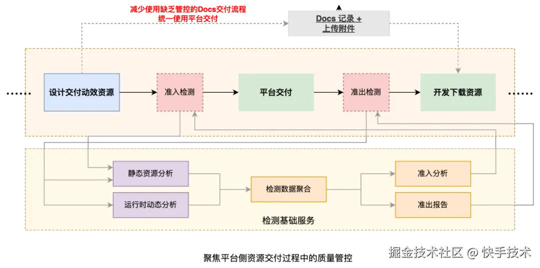 导读:快手动效 Vision 平台为解决动效资源交付问题,引入了动效资源准入准出检测机制。通过分析现有交付流程的痛点,平台增加了了静态和动态检测服务,确保动效质量与性能。该套系统已成功召回并预防了多次线上问题,提升了使用动效资源的稳定性和效率。