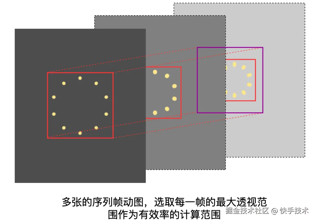 序列帧动图是实现动效的重要手段之一。与静态 PNG 的图片有效率场景类似,尽管动图存在帧间合并方案,但低效的序列帧动图会因每帧的共同透明区域而导致内存浪费。因此,我们需要制定有效率计算方法,以剔除不合规的动图。参考静态图的有效率检测规则,我们以每帧的最大透视范围为依据,评估序列帧动图的效率。与静态图片相比,动态图片(如 APNG、WEBP 等)的每帧解码尤为关键。以 APNG 为例,可以通过 Sharp 库设置 animated: false 获取所有帧进行遍历判断,或使用 UPNG.js 等解码库逐帧获取内容。获取逐帧内容后,进行类似静态图片的对比,从而简单判断动图的有效率。