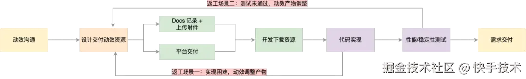 分析以往的动效资源交付流程,动效资源的交付严重依赖于设计师通过 Docs 文档记录和附件上传,更新则完全依靠人工同步,缺乏系统化的流程和质量管控。由于动效资源问题的解决往往需要对比较多资源,许多问题场景需要反复与设计师沟通,导致资源交付流程循环往复,极易影响项目的整体交付进度。