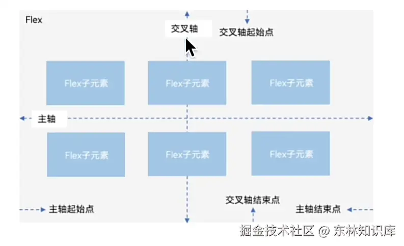 弹性布局 ,默认布局方向是主轴水平往右,交叉轴垂直向下(row)
