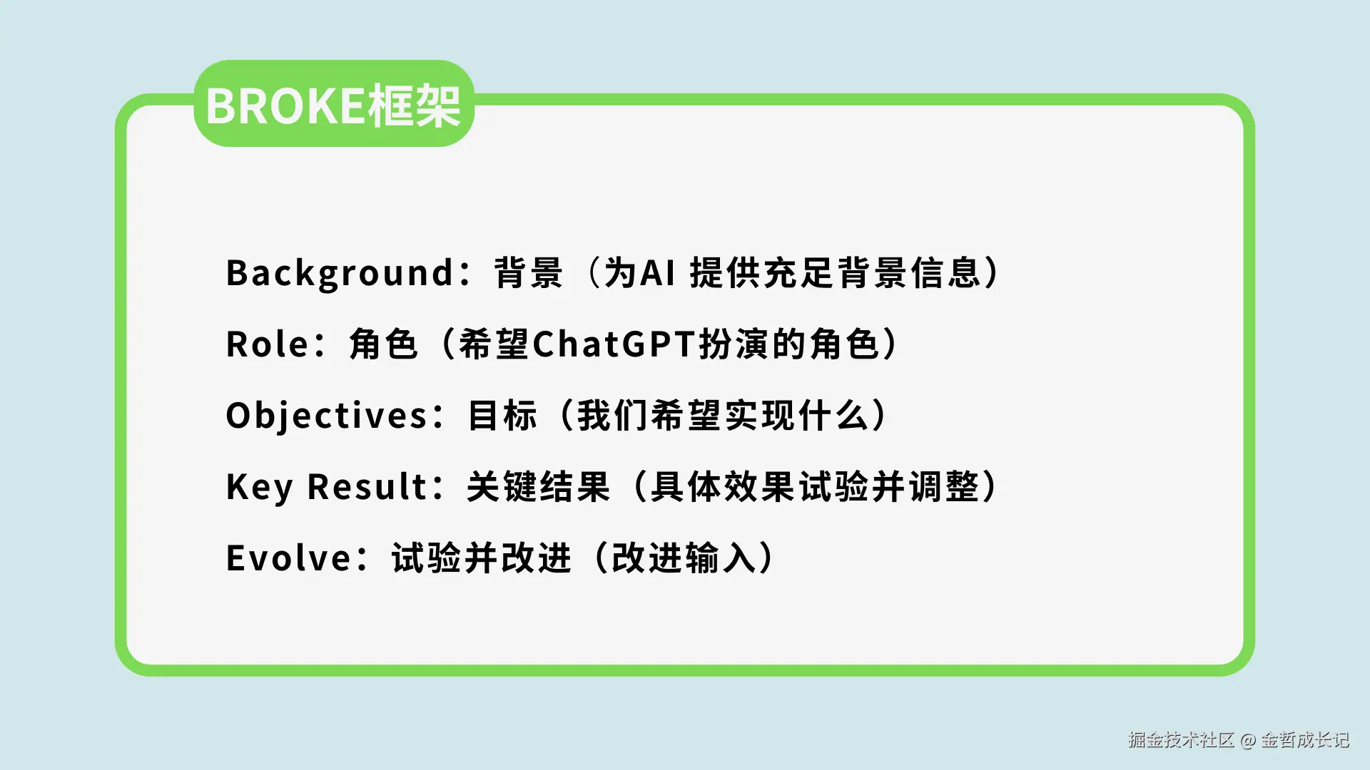 熟练使用提示词框架,你会慢慢发现,其实框架本身不重要,框架只是提供了一个模板让我们可以通过结构化的表达我们的需求。让大模型更清楚了解我们的诉求,可以给我们更好的回复。