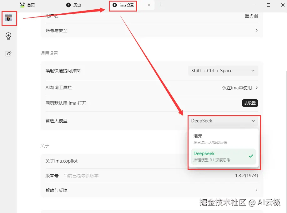 🔹 选择默认 AI 大模型(支持腾讯混元 & DeepSeek R1) 🔹 开启 AI 划词功能(全局可用,支持 AI 解读、改写、翻译、问答等)