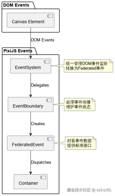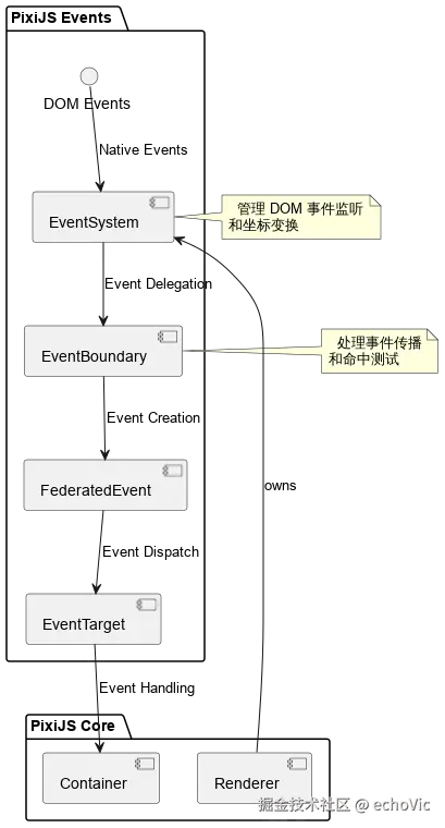 PixiJS 的事件系统承担着以下核心职责: