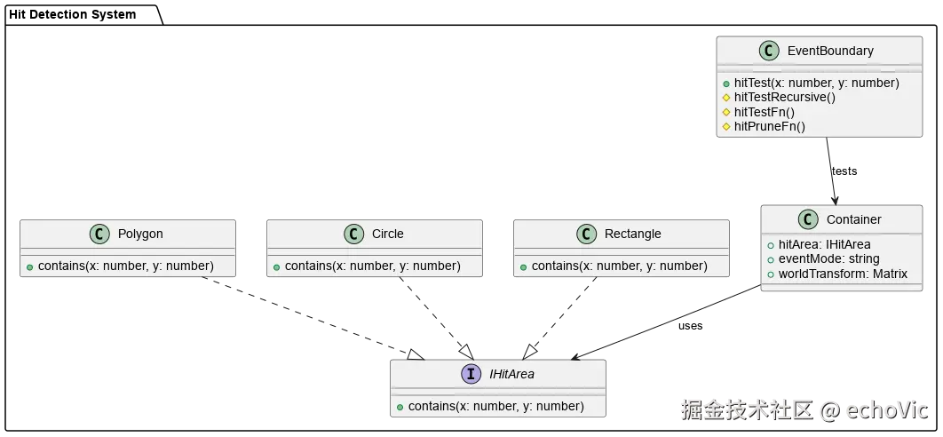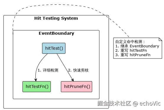 PixiJS 的命中检测系统也是可扩展的。核心是 EventBoundary 类中的命中检测方法: