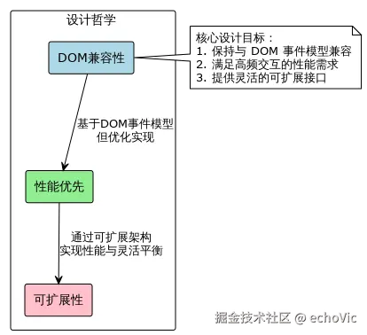 - 实现与 DOM 类似的事件传播机制(捕获和冒泡),保持开发体验的一致性