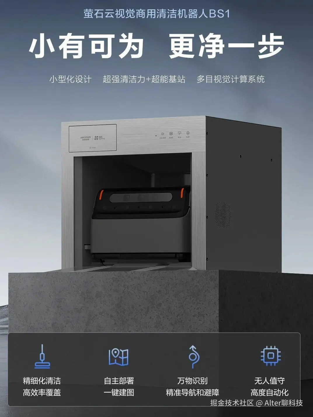 时间来到2023年,在视觉技术领域沉淀多年的萤石,顺势“杀入”到了商用清洁机器人赛道,推出了萤石云视觉商用清洁机器人BS1,单从名字上就可以看到,萤石想要通过不同的技术路径挑战清洁机器人落地的“三重门”,进一步打开清洁机器人的想象空间。