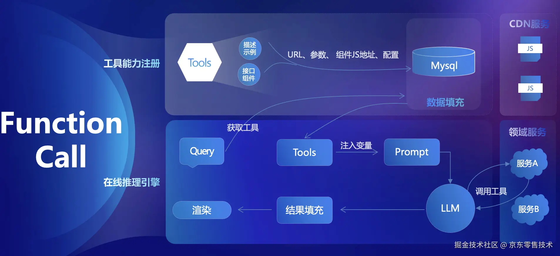 提供实时在线服务,核心作用是组装工具信息调用大模型进行推理。以下是主要步骤: