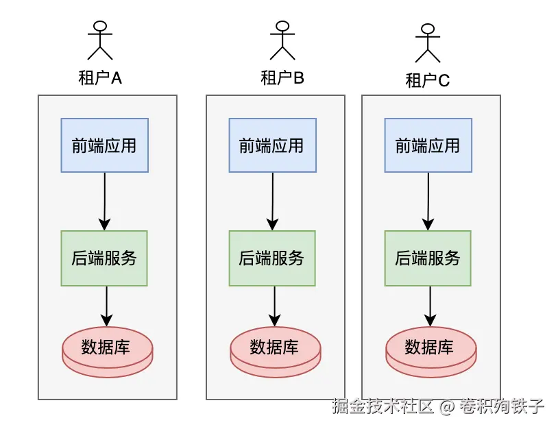 每个租户享有独立数据库实例。