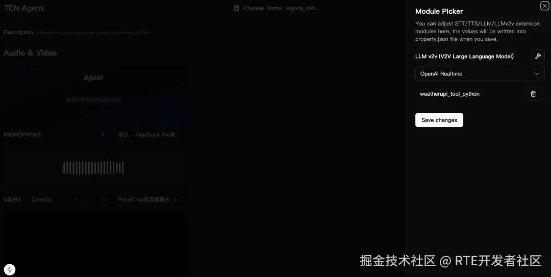 选择 graph “voice_assistant_realtime”之后,点击Module Picker打开模块选择器