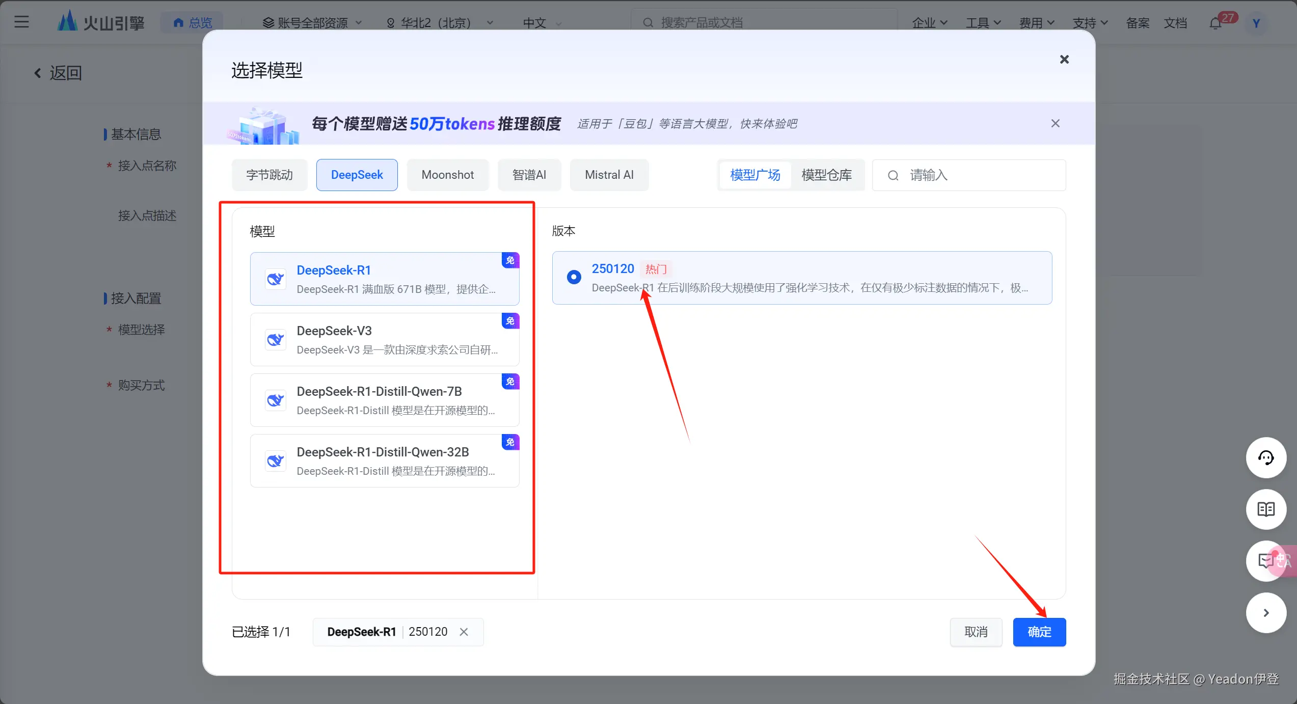 领取375万R1模型的tokens(和硅基某某不一样,火山方舟的deepseeR1有很高性能和速度)