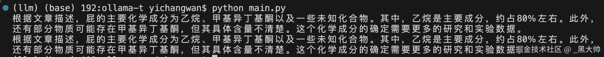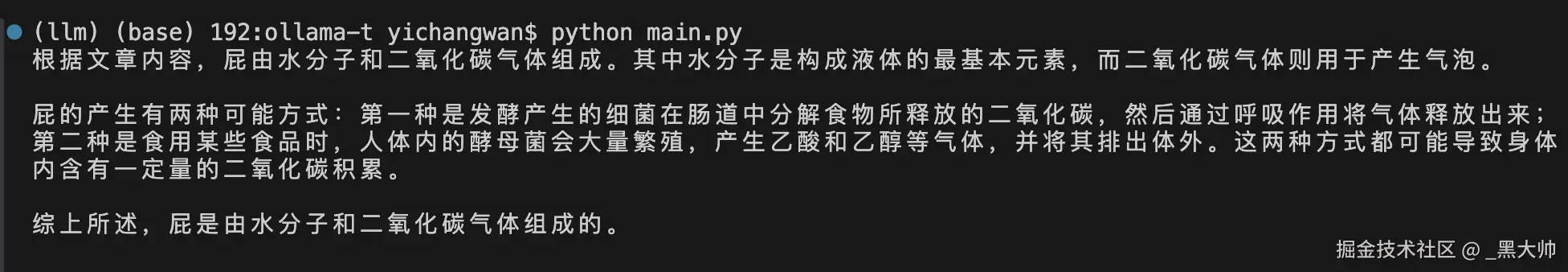 在本地环境中,我们可以使用Python中的Ollama模块来调用模型。首先,安装Ollama模块: