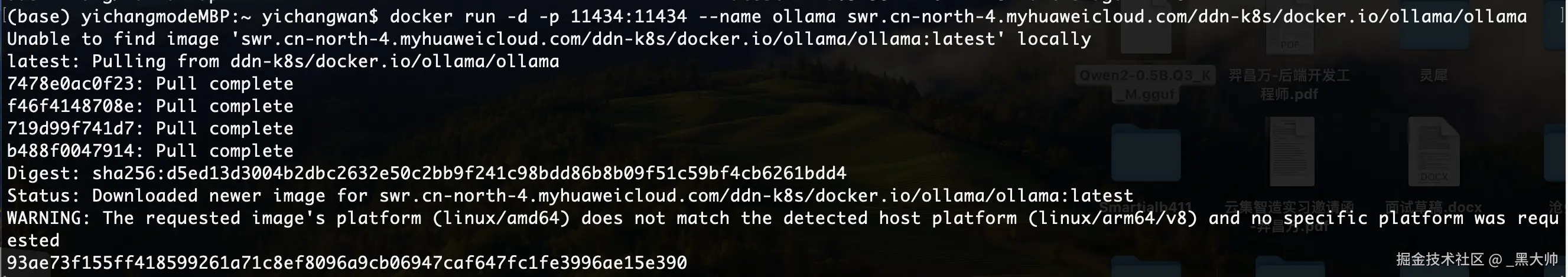 docker run -d -p 11434:11434 --name ollama swr.cn-north-4.myhuaweicloud.com/ddn-k8s/docker.io/ollama/ollama