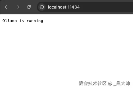 运行成功后,可以通过访问localhost:11434来确认Ollama是否成功运行。