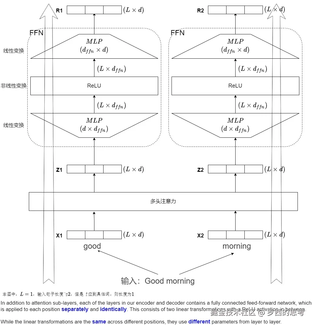 - FFN中两个全连接层之间会施加dropout(对应图上序号3)。