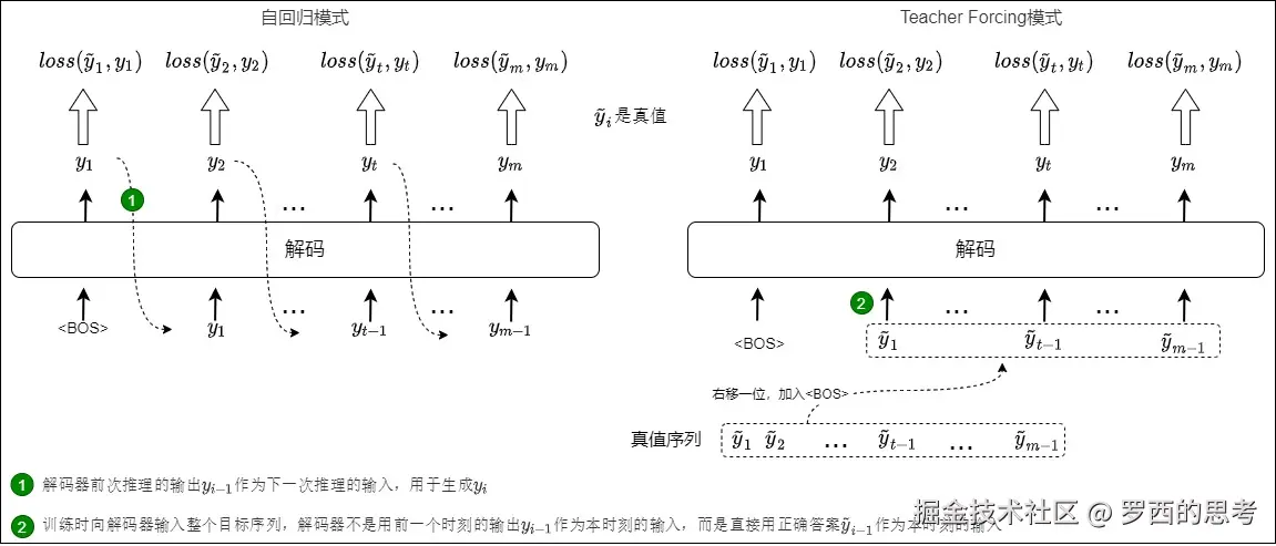 | 输入 | 源语言序列 + 目标语言序列(真值) | 源语言序列 + 目标语言序列(预测的输出) | |