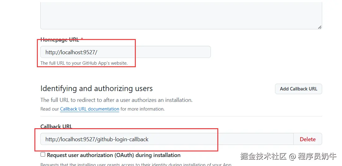 在 GitHub 上创建一个 应用,获取 Client ID 和 Client Secret。只需要在gitub的开发设置里面申请就好了,我觉得有的网站(包括gitee)第三方登录申请比较友好,直接注册,并且支持loaclhost的调试,大大的降低了难度。